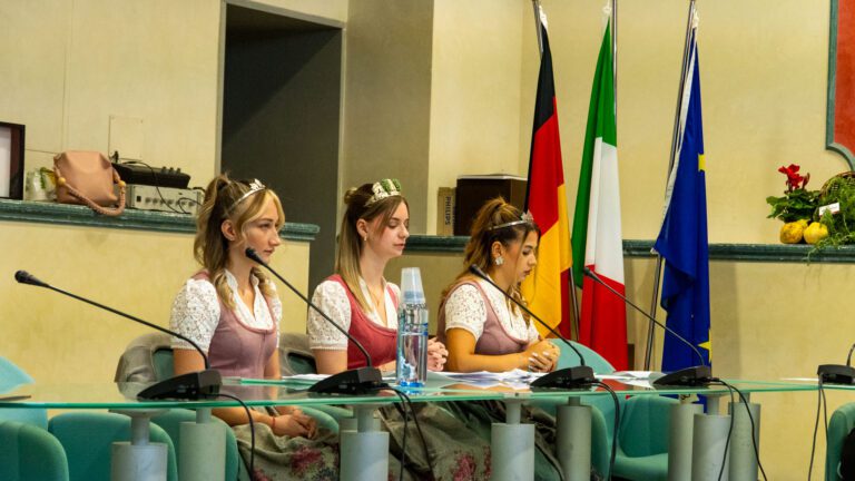Der Samstag markierte den offiziellen Höhepunkt der Reise, sowohl im Hinblick auf die Partnerschaft als auch auf die Fiera d’Ottobre. Der Tag begann mit der Eröffnung der Ausstellung „Verflochtene Erinnerungen“ auf der Fläche vor dem Ratssaal. Ein besonders wichtiger Moment war die anschließende Erneuerung der Partnerschaftsvereinbarungen im Ratssaal. Diese Zeremonie bekräftigte das Engagement beider Städte, die freundschaftlichen Beziehungen zu festigen.